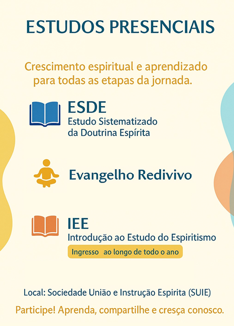 - Sexta-feira – 20h – IEE – Introdução ao Estudo do Espiritismo